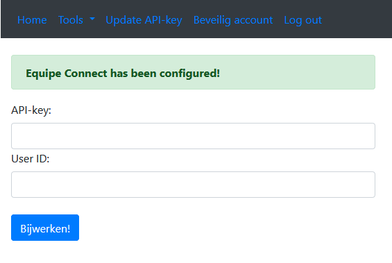 Voor die process is het belangerijk dat je API-Key is ingesteld, of dat je deze bij de hand hebt. Zo niet ga naar verkrijg Equipe API-Key.